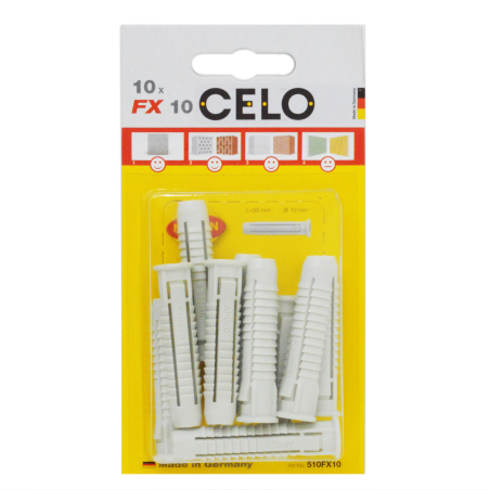 Diblu CELO FX oferă valori portante foarte ridicate în diverse materiale de construcție. Nervurile sale împiedică rotația în gaură. Datorită gulerului acesta nu alunecă în gaură. Diblul FX este fabricat din nailon rezistent la îmbătrânire de înaltă calitate. Poate fi utilizat cu diferite tipuri de șuruburi, cum ar fi holsurub, surub pt. PAL, șuruburi autofiletante etc. Rezistentă la temperaturi de la -40 ° C la + 80 ° C. Oferă o gamă largă de aplicații.